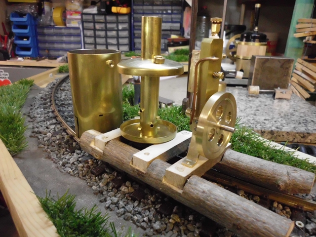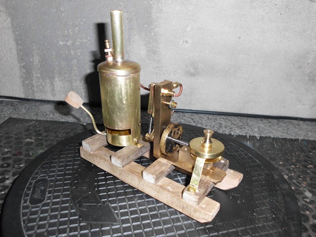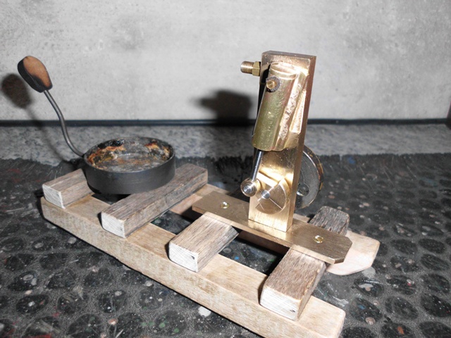 baue ich jetzt eine oszillierende Dampfmaschine auf ein Holzgestell.