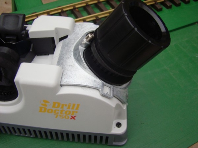 DrillDoctor einschalten. Das Futter in die Schleiföffnung führen und von der Bohrergröße hängend, 2 – 20 Halbdrehungen mit leichten Druck in Uhrzeigersinn machen. Fertig.