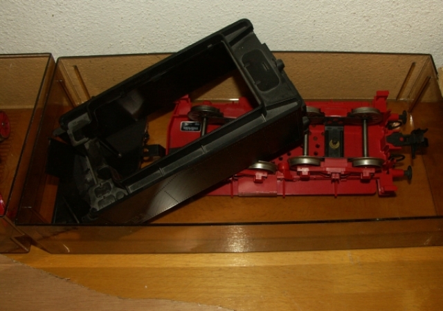 es gab mal einen Artikel über den Umbau von einem Märklinglaskasten auf Echtdampf.Außer Gehäuse, Teile des Rahmens, Räder und ein paar Ausschmückungsteile wurde nichts weiter verwendet.