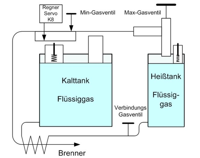 e. VG Ventil schließen und mit Betätigung des Kalt tank – Entlüftungsventils den Kalt tank füllen. Sobald wieder ein Gasnebel entweicht ist die Gasbetankung beendet.