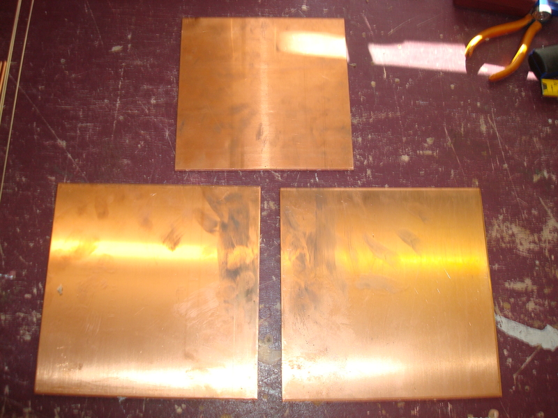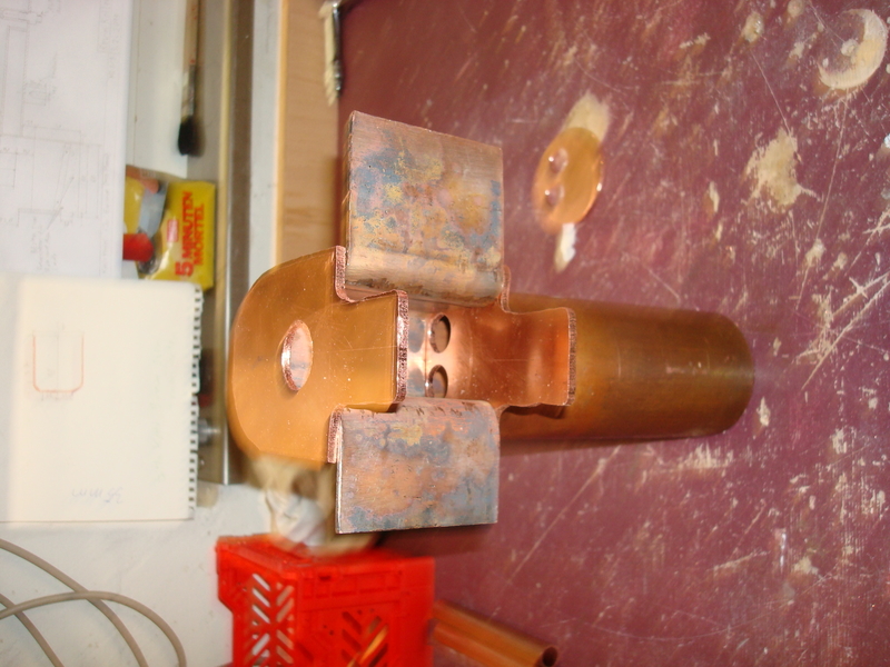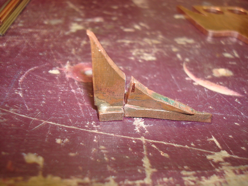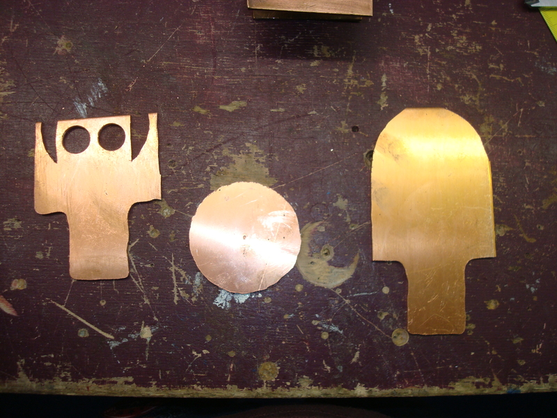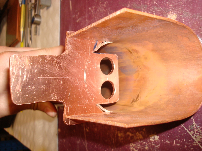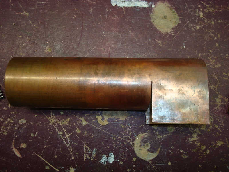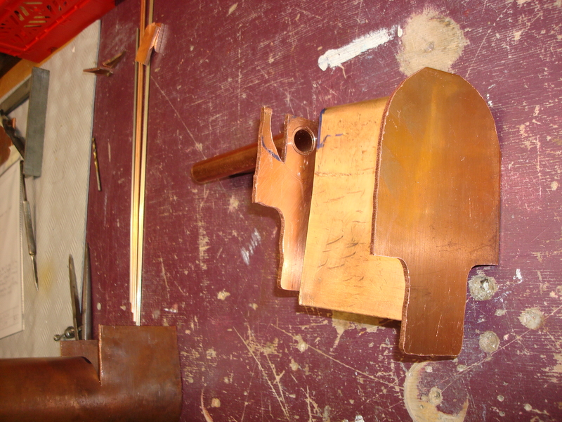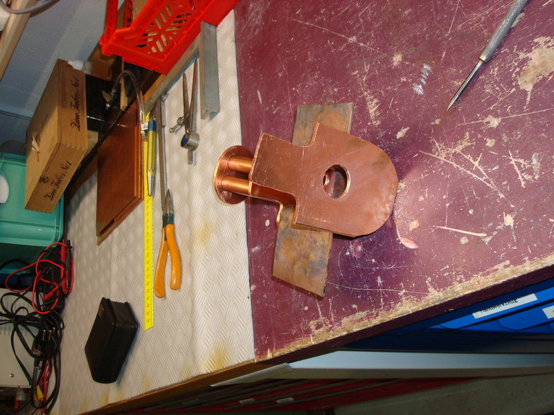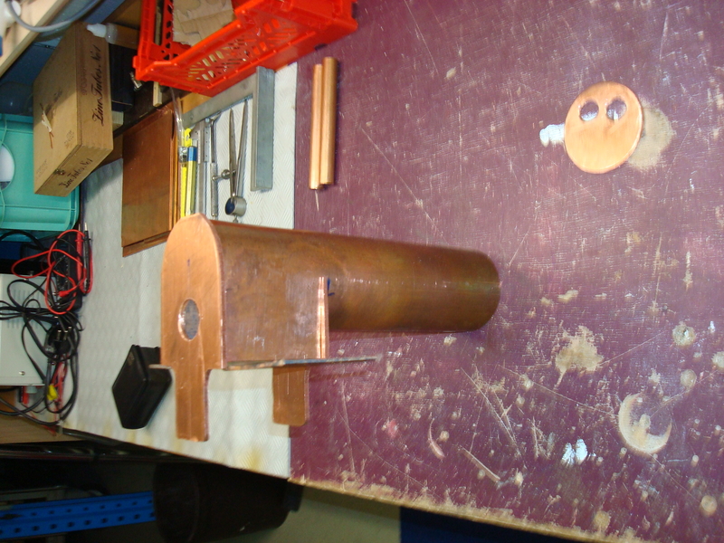 Die Kupfer Teile. Es Fehlt noch das 3mm Kupferblech sollte aber in den nächsten Tagen bei mir eintreffen. Im Hintergrund die Pläne und Skizzen.