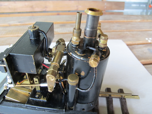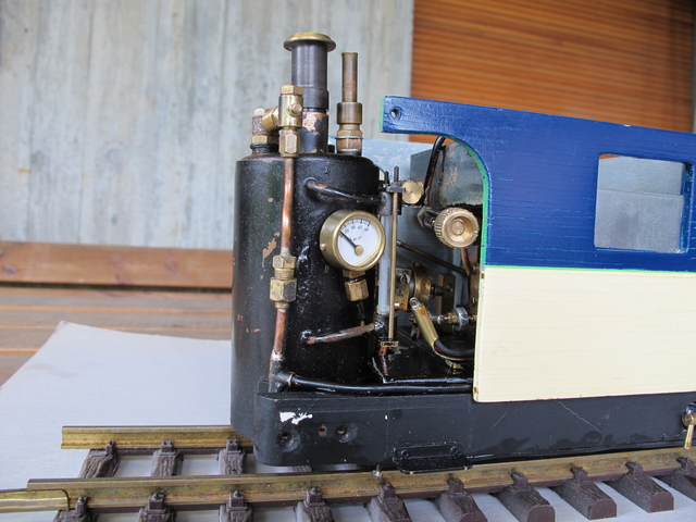 für die Leitungen, hinten Godall-Ventil zum Füllen des Kessels.