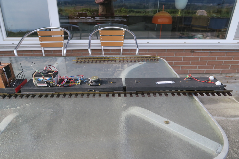 Die beiden Töne, Pfeife und Glocke, sollten aber mit der gleichen Fernbedienung wie der des Maschinenwagens bedient werden. So habe ich einen zusätzlichen Empfänger eingeplant. Mit ihm kann ich nun die Töne unabhängig auslösen.