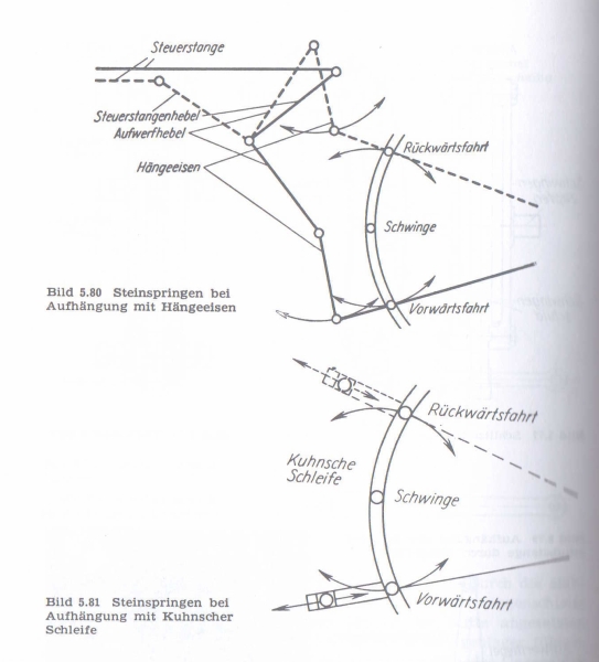 Das Steinspringen tritt aufgrund der Geometrie von Aufwerfhebel (+Hängeisen), Schieberschubstange und Schwinge auf.