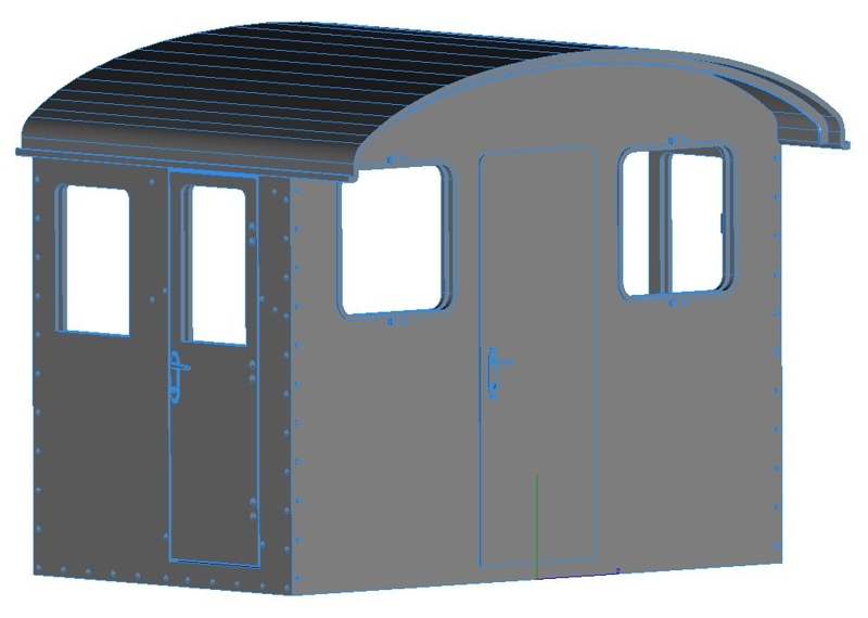 Weiter geht es jetzt mit den Haltegriffen und dem Wagenübergang auf der Rückseite. Die fehlenden Details für die Motorhaube sind weitesgehend gezeichnet und werden als nächstes gedruckt.