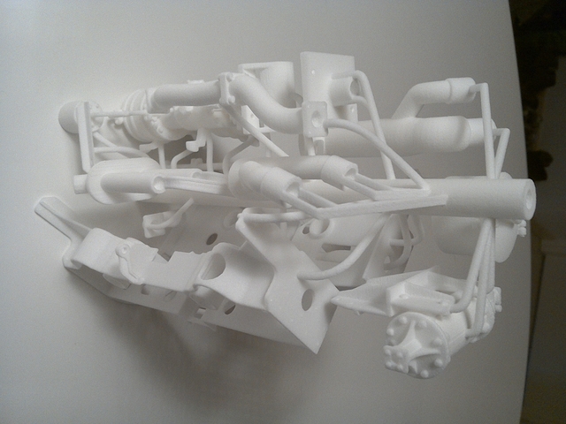 Bis auf die Rohre, Schrauben etc. sind auf dieser Zeichnung alle Teile Gussteile, die zuerst in 3D gedruckt werden, und dann per Ausschmelzverfahren in Messing/Alpaka oder Bronze gegossen werden.