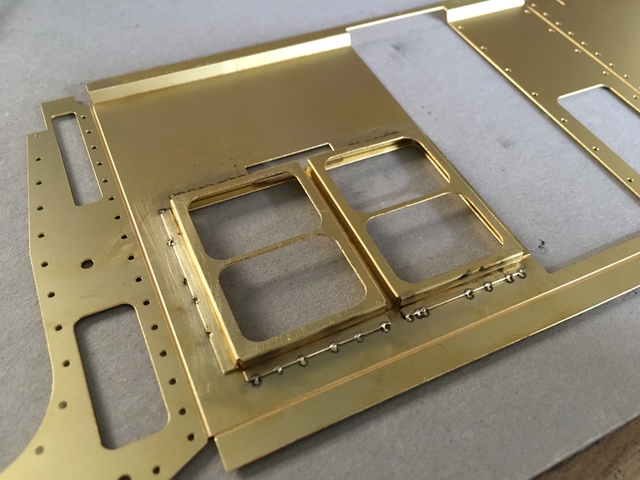 Beim ätzen sind die Falzlinien gleich mitgeätzt, sodass die Einzelteile wie Fenster und Türen problemlos zu machen sind. Das Ganze ist jetzt einmal nur punktgeschweisst. Gelötet wird als nächstes, wenn die 200 Nieten eingesetzt werden…