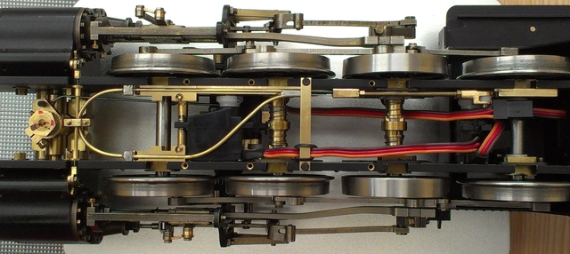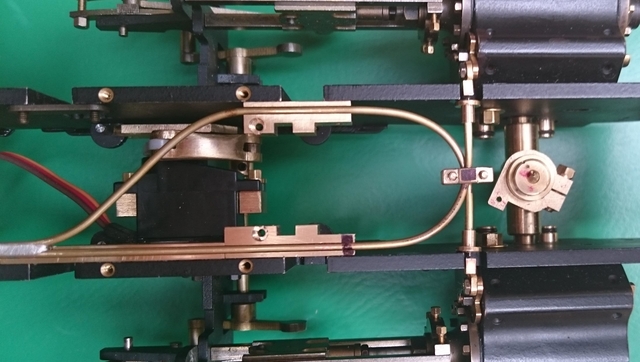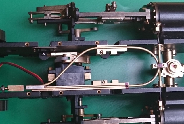 Mir ist bis jetzt noch nicht bekannt, dass Entwässerungswellen über Bowdenzüge bewegt werden. Wenn man anfängt die Mechanik der Lokomotive anders zu gestaltet, sind einige Änderungen vorprogrammiert. Die üblichen verschiedenen Hebel und Gestänge für die Entwässerungswellen haben mir aber so wie so nicht richtig gefallen. Wichtig ist mir auch die symmetrische Bewegung der Wellen. Da mir vor kurzer Zeit, Niro-Ferderstahldrähte ins Haus geflattert sind (Friedlseidank), habe ich sofort Versuche damit gemacht.