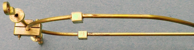 Die Rohre der Bowdenzüge sind 1.5 mm Ø außen, warm gebogen (noch vor der Rotglut). Der Niro-Stahldraht 0.5 mm Ø ist mit den "Nippeln" weich verlötet. (problemlos). Die Servo-Montage ist noch zu machen.