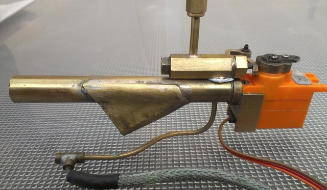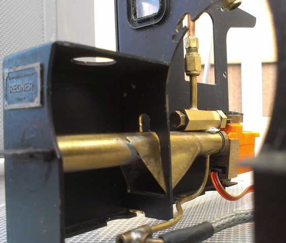 Das Original- Servo ist rechts beschnitten /Der große Trichter an der Pfeife bringt den Klang