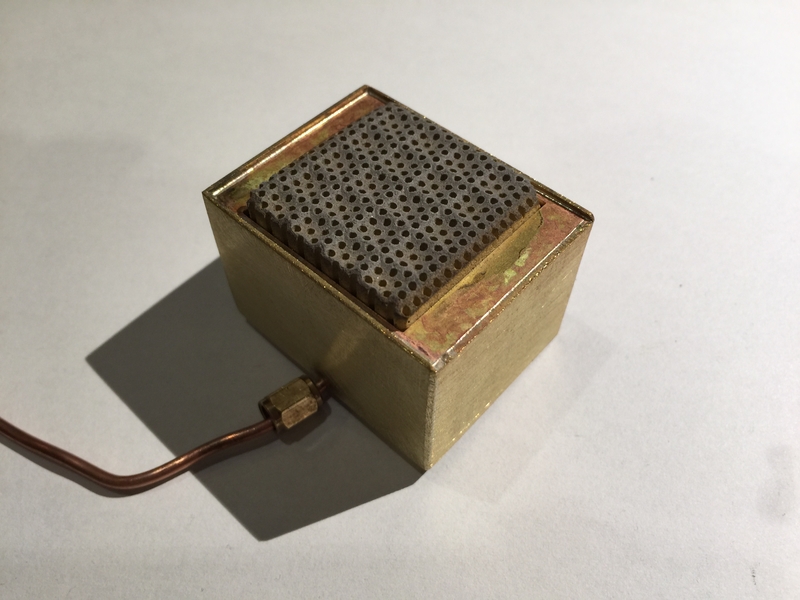 Schnell zusammengebaut (gesteckt und mit einer M2-Gewindestange fixiert). War kaum 5min Arbeit. Als Keramik diente die eines Regner 50827, der in der Schublade lag. Dann konnte schon mal gezündelt werden (mit Regner Düse und Düsenstock):
