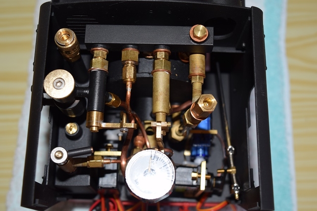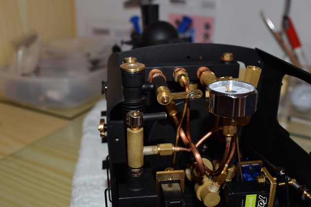 Die übrigen Teile, wie Kessel, Leitungen, Armaturen, Gehäuse, Pfeife, Bremse und Servos habe ich dann einzeln vom ihm bekommen um dies selbst zusammen zubauen.