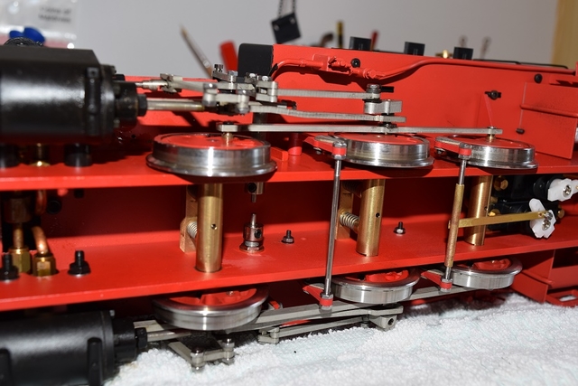 beim genaueren Betrachten habe ich gesehen dass die Kuppelstange nicht geteilt ist. Stimmt das ? Das würde ja dann das unabhängige Federn der Achsen verhindern und wäre schade an einer solchen Lok. Dazu könnte man mit einer Erweiterung des Gestänges beide Achsen bremsen. Was wiederum effektiver wäre.