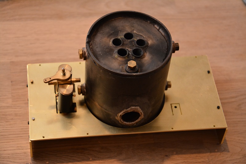 Der Kessel ist aus Edelstahl/Kupfer geschweißt bzw. hart gelötet, Einlötnippel aus Rotguss (Niggel). Der Außendurchmesser beträgt 88,9mm. Die Feuerbüchse besteht aus einem Rohr 42*1,5mm und ist etwa 60mm hoch, wobei die die untersten 25mm trocken sind. Der Kessel hat 5 Rauchrohre 12*1mm. Die Feuerung findet durch ein 22*1mm Rohr statt. Dank des pflegeleichten hohen Glutbetts ist das vollkommen ausreichend.