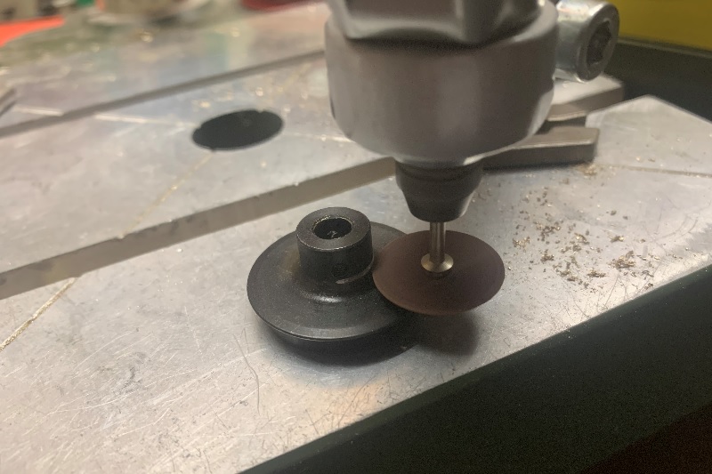 Dann noch neue Löcher für Madenschrauben gebohrt und die Kunstoffbuchse wieder "reingeklopft":