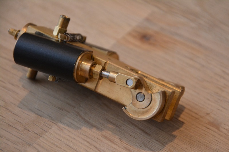Ich hatte ursprünglich geplant, einen Wackel-Dackel-Dampfmotor selber zu bauen. Es stellte eine schöne Finger-, Gehirn- und Fräsübung für richtige Lokzylinder dar. Da aber nun der Akkuschrauber keine Fräse ist, habe ich mir einen Dampfmotor bei Regner bestellt, da isser: