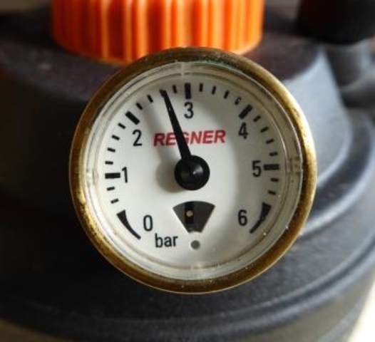 Ein Regner Manometer aus dem Fundus montiert, damit man sieht ob die Luftpumpe Wirkung zeigt und fertig. Als Dichtung fungiert ein, na was schon bei mir! Silikonreifen! :mrgreen: