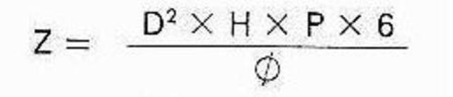 D = Zylinderdurchmesser (mm)