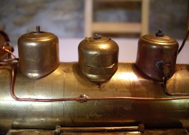 Nach ein wenig rumspielen mit dem Hilfsbläser(vor allem dass der Dampfstrahl durch den Schornstein zentrisch austritt ist wichtig) funktionierte der Kessel mit dauernd abblasendem Sicherheitsventil und das trotz wenig Erfahrung im Heizen in dem Maßstab.Gute Voraussetzungen also für den späteren Betrieb.