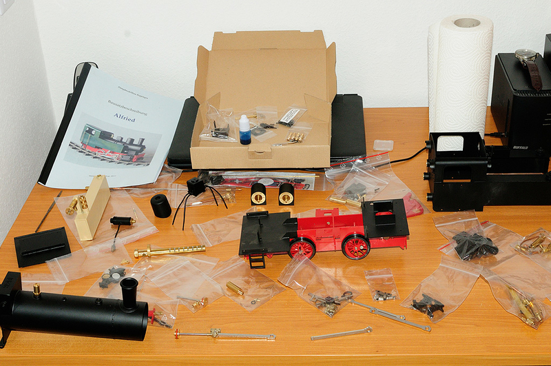 Nach kurzer Stippvisite vor ein paar Wochen habe ich kurzerhand bei der/die/dem/das Alfried zugeschlagen. Der Preis ist mit ~1000€ für das Basismodell schon eine Ansage und die Lieferzeit von nur gut einem Monat gab letztendlich den Ausschlag sich früher als geplant eine reine Bahnhofs-/ Rangierlok anzulachen und als bislang reiner Regner-Fahrer ins "Reppingen Universum" vorzustoßen. Von vier Bahnhöfen auf unserer Strecke sind 2 davon 3-4 gleisig mit ausreichend zusätzlichem Stumpfgleis - rangiert werden kann also zu Genüge. Deshalb habe ich die Lok auch direkt mit Entkupplung sowie Pfeife bestellt. Das Ganze natürlich als Bausatz, ich will ja wissen was da arbeitet. Außerdem hat sie vorne wie hinten Dreilicht Spitzensignal schon "ab Werk". Und weil Ralph wusste dass wir hier gerne ausgiebig fahren gabs auch direkt einen größeren Gastank als normal. :flt: