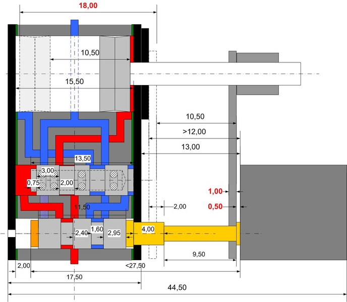 Bei Innensteuerung kollidiert weder der Kolben, noch Schieberkolben mit Zylinderdeckeln!
