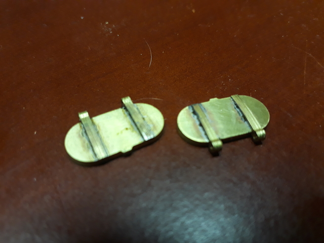 Die Teile wurden ausgefräst und dann auf ein Stück Mesing aufgelötet und weiter bearbeitet.
