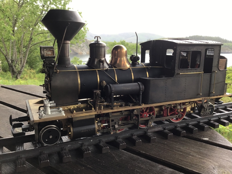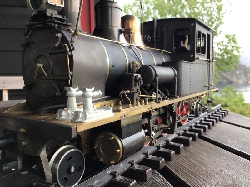 Nachdem ich ca. 2004 meine erste Echtdampflok gekauft und gebaut habe (Regners U), kam schnell der Wunsch auf, was eigenes zu bauen. Die Wahl fiel auf die Lok Nr 2 der Setesdalsbahn, einerseits weil sie sich von normalen Loks doch etwas abhebt, andererseits weil sie mir gefällt, ich norwegenaffin bin und auch Literatur und Bilder vorhanden waren (und ich auch das Original in zerlegtem Zustand begutachten konnte). Steuerung, Zylinder und Kessel wurde bei Herrn Regner bestellt, Basis sind Teile der U. Lampe und Ausstattungsteile sind von Ozark (soweit ich mich erinnern kann) der Dampfdom und Sandbehälter sind von Aster (nochmals danke an Andreas fürs besorgen).