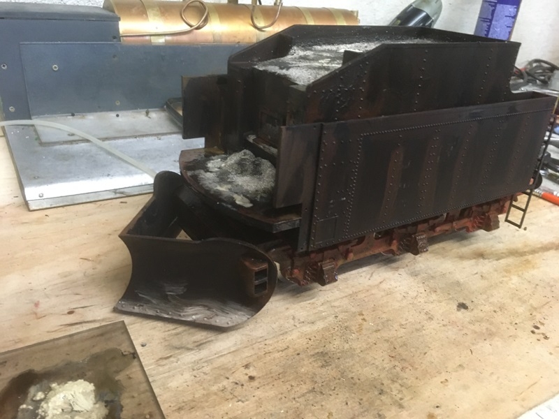 Hier habe ich den Tender komplett mit Pigmentfarbe angestrichen.