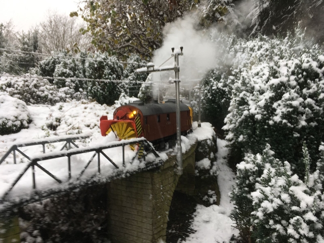 Es war einmal eine Schneeschleuderfahrt mit der historischen Dampfschneeschleuder Xrot 9213 angekündigt. Zum Glück hatte sich über Nacht etwas Schneefall auf der Südseite des Berninapasses angekündigt, so dass die Räumequipe der Rhätischen Bahn aus Poschiavo mit einer elektrischen Räumkomposition anrücken musste, um die Strecke zu prüfen. Mit dem typischen Beilhack-Schleuder Geheule ging es an den wartenden und frierenden Dampf-Enthusiasten vorbei.