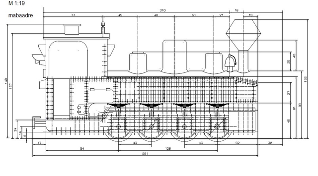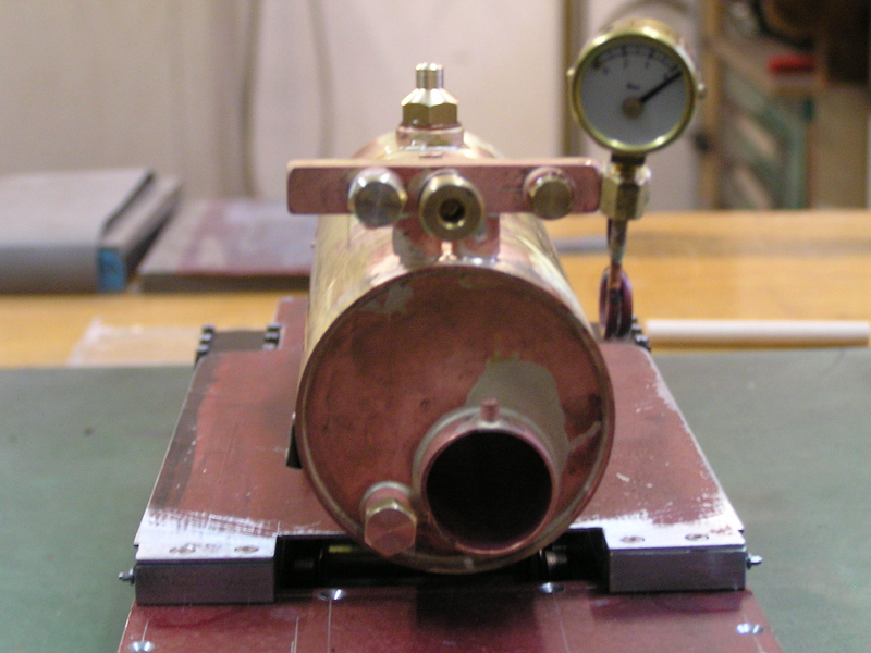 die Lok hat einen einfachen Flammrohrkessel mit 22er Flammrohr und 3 Quersiederohre. Einfach und gut :!: Ich habe bei meiner 70er auch 2 komplizierte Kessel gebaut, die nur Arbeit gemacht haben, aber in der Leistung entäuschend waren. Ich baue für selbige gerade den 3. und zwar einfach und gut, genau so wie oben beschrieben, 52er Messing-Kesselrohr, 22er Flammrohr mit Quersieder.