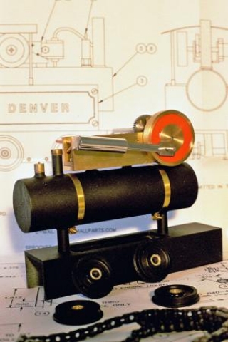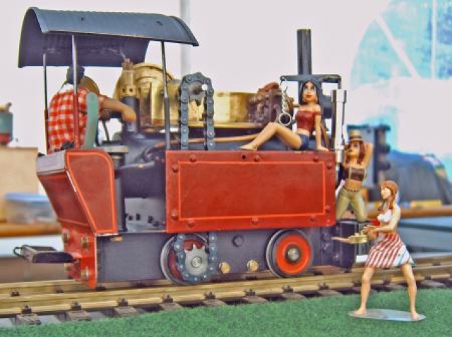 Sie hat genau den gleichen Fahrwerksrahmen und den gleichen Kessel. Es ist ein einfacher "potboiler" aus einem Messingrohr hartgelötet und auf Stelzen über dem Fahrwerksrahmen angebracht, damit die Flammen des Brenners genügend Platz haben.