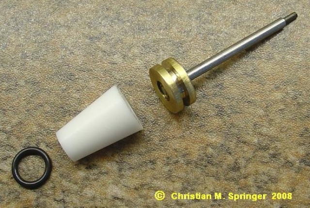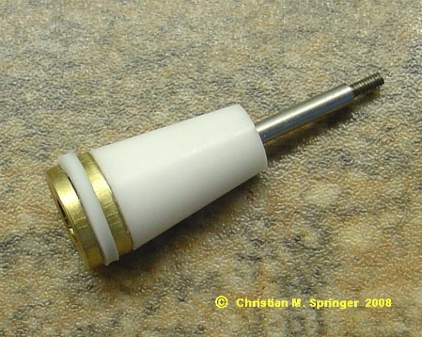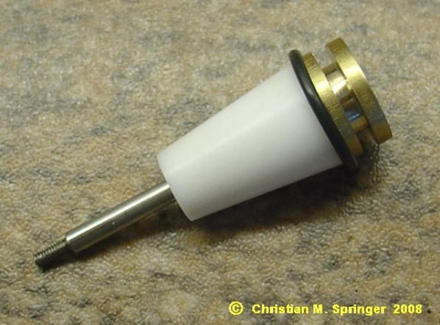Dann wurde ein Kegelstumpf aus Teflon gedreht (kann natürlich auch ein anderes Material sein) und gebohrt - und ein Vitonring FPM 80 - 7,66 x 1,78 zur Hand genommen ...