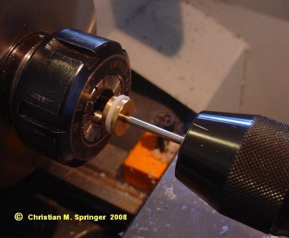 Für zwei Kolben war mir aber der Aufwand für den Bau so einer Vorrichtung zu groß. Ich hab einen anderen Weg gewählt und die Kolben einfach in eine 15 - 14 mm Spannzange geschoben ...