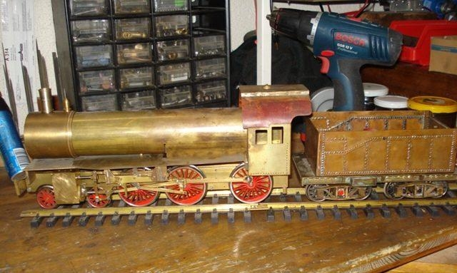 Leider hat sich herausgestellt, dass der Erbauer zum Teil nicht grad Massstäblich gebaut hat (viel zu starkes Flachmessing bei den Tender Drehgestellen) und auch nicht immer sehr sorgfältig. Den Lockrahmen werd ich ganz neu machen, da der jetztige