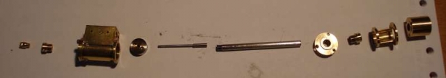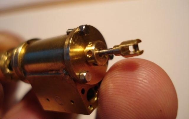 Der Kolben selbst ist aus zwei Teilen zusammengesetzt. Er wird auf die Kolbenstange geschraubt und da der Kolben oben nur ein dünnes Loch haben durfte, hab ich es zweiteilig gebaut um das Gewinde bis an den Boden der dickeren Bohrung zu kriegen.
